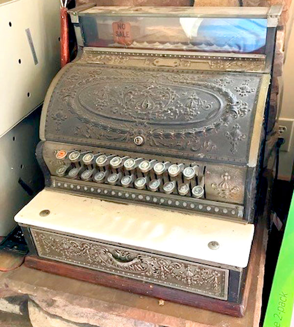 Wicker baskets; Wicker furniture; Tinius scale bar; Large copper kettles; Cast iron kettle w/stand; Military ammunition boxes for rockets, 77" long x 14" wide; Pinball machines; (3) Slot machines; Old wooden box; Wooden pine dry sink; Massive 4-leg newer oak dining table approx. 7'8" w/(6) spindle back chairs; Early quarter-sawn oak slant-front secretary w/pigeonholes; Old National cash register, 17" wide, register #S119831G, last patent 1897; (2) Brass mine lanterns approx. 12" tall, made in England; 60" x 18" horned leg table; (2) 13" brass mine lanterns, made in England; (2) New Columbia oak back bar-type cabinets, 5'4" wide x 7' tall; Prisoner ball and iron; Bentwood 6 gal. butter churn; Approx. 50 gal. aquarium 4' wide on mounted oak stand; Early primitive all wood 7' hay buncher; Winchester key padlock; Older commercial Singer electric sewing machine; Older large copper apple butter kettles; Copper boilers; Snowmobile sled; Old Kochs hydraulic barber chair; Old wooden wheelchair; 29" tall bronze Mark Twain; Large amount of fire extinguishers, some brass; Hot shower Pro Gen 2 on cart; Large old National cash register; Large acetylene torch set; E-Z-Go 3-wheel golf cart; Mortar shell casings; Antique treadle sewing machine; Antique wood cabinets 8' tall w/varied widths; Snowmobile rear sled only; South Bend Motor car sign; ARO portable greaser; Life-size Santa & Mrs. Clause and other Christmas decorations; Xerox desktop work center; Brother copier; Like new LG 25 cu. ft. black refrigerator/freezer; 5-Piece oak Victorian-style king size bedroom suite w/pillow-top mattress and springs, armoire and nightstands; (2) 60" wide solid oak Victorian-style bookcases w/3-door glass-front bookcases w/double top drawer; (2) early salt glaze jugs - 2 and 3 gal.; Daisy top-glass butter churn; 6-drawer Singer treadle oak sewing machine; Glass-top 48" round sunroom table w/(4) rolling armchairs; 19" x 12.5" x 8" Property of Wells Fargo steel strong box sn# 517; Massive claw-foot leather-style armchair; Old 18" target w/level below, all brass, approx. 2" in diameter; 1944 American Quarter Horse Congress belt buckle; Antique 42" round solid oak quarter- sawn clawfoot table; Oak arm and straight dining chairs; Flat-top wood-strapped antique trunk; (2) Early brass carriage lamps; Leather replica Indian drums, peace pipes and spears; Brass trade scales; 48" antique flax spinning wheel; Large amount of varied framed pictures; Fire King 4-drawer fireproof file cabinet; Old hobby horses; (4) approx. 14" bronze statues including (3) Remingtons w/ Trooper the Planes, Mt. Man, Cheyenne and Rider in the Rye;