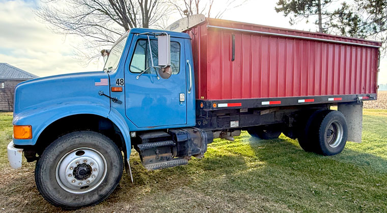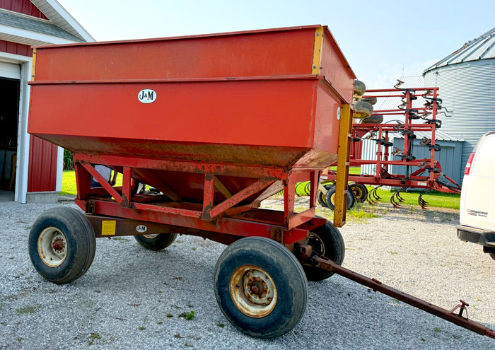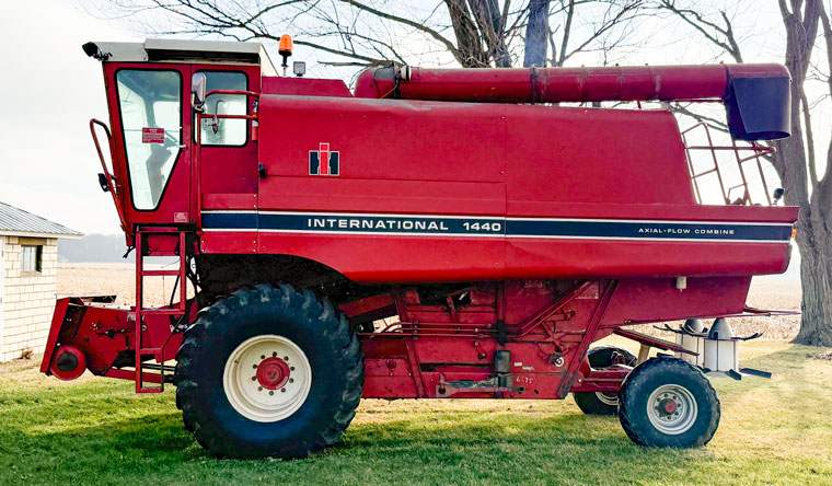 International 1440 Axial-Flow combine, very good 23.1x26 rubber, 3228 hrs., SN 1680212U006695; International Model 863 30" 4-row corn head, SN 0730099U00556; Nice International 1020 15' grain head; E-Z Trail low profile head wagon to be sold separately; Case- IH 1020 20' grain head; Super nice 1991 International diesel single axle grain truck with very nice Knapco 16' bed, hoist, roll tarp, 48" sides, just over 200k miles, 6-speed manual transmission; 1987 GMC Sierra 3500 dual-wheeled light utility dump truck with 8' bed, 4' sides, manual transmission, has some rust, would make a good utility truck around the farm; H&J heavy I-beam constructed 21' beavertail trailer, tandem axle, wood deck, stored inside, in great condition; (2) J&M gravity wagons, approx. 250 bushel with 14" sides, 10-ton flotation gear, adjustable tongue; (2) Parker 225 bushel gravity wagons with extensions on a Kewanee #45 approx. 10-ton gear with adjustable tongue; Nice Kewanee 8" x 53' PTO transport auger, stored inside; Hutchinson 6" PTO-driven approx. 56' transport auger; Flat rack wagons with light 6-ton gear for hay rack; Misc. scrap iron; Universal flare-side wagon box on old rubber tire wagon gear; (2) harrow weeders with old spoked wheels; Older single axle wooden-sided utility trailer; aluminum 8' truck cap; 1970 Honda CB360 motorcycle; Yamaha 49cc moped; Allis-Chalmers 416 hydrostatic riding lawn tractor with front blade;