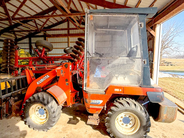 International 986 diesel cab tractor, double 3 rear weights, duals, with excellent 18.4x38 rubber, 3283 hours, SN 2510189U011263, extremely clean; (8) 75# International suitcase weights to be sold separately; International Model M NF gas tractor with fenders, SN 179430XI; John Deere 326D 2 spd. diesel skid loader, 1 owner, hand controls, 7400 hrs.; Case Model 5808 Construction King open stationed backhoe loader with ROPS, 80" material bucket and rear 22" backhoe bucket, 7116 hrs., SN 8714701, no FWA; Kubota R420 articulating front end loader, 3240 hrs., with forks bucket and 9' snow blade attachments to sell separate besides bucket SN10007; 36" rolling hydraulic tumbling rock picker, fits on Kubota loader; Versatech 65" hydraulic grapple bucket, fits Kubota loader but could be adapted to skid loader; International 720 6-bottom on-land plow with spring loaded coulters and 18" gauged wheels; Krause Model 5600 walking tandem hydraulic fold field cultivator with spring rake, 28' total; Krause 4809 12' pull-type disc chisel plow, walking tandem 9 shank; Case-IH 3900 rock flex deep dish 20' hydraulic fold disc, nice as you'll find; Very nice Unverferth McCurdy 225 20' rolling basket harrow; Dunham 12' cultipacker with wings and 2 side 5.5' packers, they could be plow packers; John Deere 24' hydraulic fold pull-type walking tandem field cultivator with Buster Bar; 8' Little Rhino 3 pt. grader blade; Case-IH 900 liquid Cyclo air planter, 6RN with row cleaners, monitor and auto-fill; John Deere 400 3pt. rotary hoe, excellent; Case-IH 6-row 3 pt. Danish tine cultivator; Older International 6-row straight shank cultivator; Ritchie Bestway sprayer, 50' folding booms, Ace pump, large flotation tires, extremely nice; Nice 500 gal. poly tank field sprayer with 30' booms; International 510 grain drill, no grass seeder, with applicator; 1000 gal. poly tank, 450 gal. tank, 800 gal. poly horizontal tank and others; International Model 1300 3 pt. Pitmanless 7' sickle bar mower; Allied single auger 8' 3 pt. hydraulic chute snowblower; Banjo transfer pump with Briggs 550 gas engine and varied hoses; Other misc. transfer pumps; H&S PTO hay tedder; Good, older 2-horse hitch pull trailer with title; Keenan True Technology trailer-type reel feed mixer; Automatic Equipment Model AJG1800A PTO corn grinder;