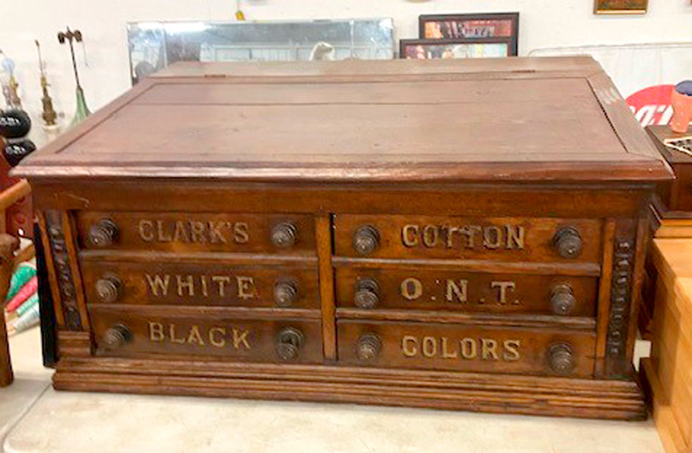 Approximately 35 pieces of Adirondack furniture, reed bottom and back some, tables, armchairs, rockers, bed, high chairs, children's love seat, adult love seat, children's rockers and chairs; Adirondack hall trees; Wood tree stump tables and foot stools; Huge amount of artwork, pictures and frames; Dining chairs; Solid oak five leg dining table w/leaves; Very nice claw-footed oak curve glass china cupboard; 1920s step back cross paned cupboard, 2 piece; Child's zinc top kitchen cabinet, replica of a full-sized zinc tray that we are selling full size one that has zinc base early vintage oak; Étagre mirrored multishelf stand; Cedar chest- many varied stands; Blanket chest; Edison phonograph, console floor model; Very nice mission-style oak library table; Clark's 6-drawers spool cabinet; Crowleys' Needles box with porcelain pulls; Clark's 2-drawer spool cabinet; Regina 15" disc music box, works; Other varied music boxes; Clocks; dough tray tub; Early Art Deco radios, Crosley, Fada in bakelite and others; Fluted large bulbous quilted pink opalescent table light; Early leaded table light, no stand and many other lamps; Advertising plates; Cups, saucers, pottery, glass, decorative; Jewel Tea varied colored Pyrex nest bowls - Jadeite pieces; Old advertising metal serving trays; Spatterware, spittoons; Numerous children's toys, cradles, clothes; Some advertising, calendars, and signs; 20 gal. Western crock; 100 varied advertising yardsticks; Fireplace screens; Beautiful blue porcelain Strueler Elkhart, Indiana produce scales; Dayton produce scales; Electric wall hung barber pole; Numerous baskets; Lot of reference books; Varied sleigh bells; Buggy blankets; Kerosene lamps including railroad lanterns; Selective service 32" sign; Large amount of varied quilts; Comforters; Rag rugs; Hand sewn linens; Chenille bedspreads; Varied decoys; Large amount of jewelry, primarily costume; Old magazines; Old picture albums; Varied political items; Trays full of jewelry; Advertising items; Misc. toys; Matchbox toys; Tramp art; Shawnee dog and cat cookie jars with salt and pepper; Vintage toaster; Weller and Hull pottery; Early child's miniature wood burning cook stove; Misc. brass; Misc. copper; Large amount of piano babies; Milk bottles; Marbles; Aluminum ware; Collection of cast iron and pottery pig banks; Collection of matches; Set of Time Life Western books; Hand painted milk glass; Collection of black babies; Over 40 tables full of items; Something here for everyone, toys, fabric, music machine, furniture, jewelry and so much more!