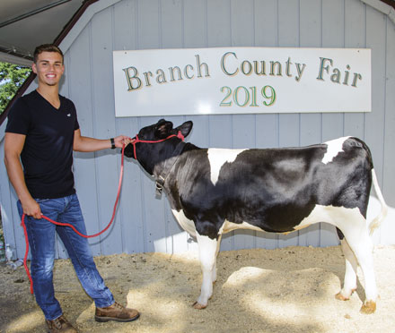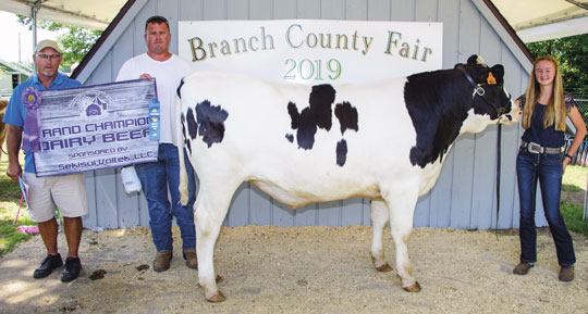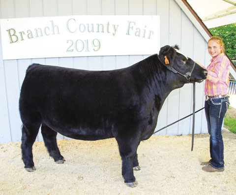 The grand champion dairy steer was exhibited by Elly Brewer of Quincy. The 1,484-pound steer was auctioned for $1.68 per pound ($2,500) to N.G. Michael Construction, Bear and Karen Ratkowski, Century Bank and Trust, Shipshewana Livestock, Haylett Auto and RV, Bracy Ag Services, Bronson Veterinary Service, Brewer Refrigeration Air Conditioning and Heating, M&K Plumbing and Heating, Mark Harwell Trucking, Strawberry Ridge Farm, Brian and Kelly Mainstone family, Barrows Farms/Kalmbach Feeds, Central Grace Farms, Penta Equipment of Ontario Canada, and A. Paul and Krisann Dygert.