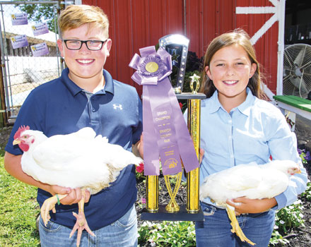 The grand champion broiler chickens were shown by Dreden Feltner of Union City. He sold the birds for $200 to Ceres Solutions. Conner Sarles brought the reserve champion broilers and sold them for $200 to Haylett Auto and RV.