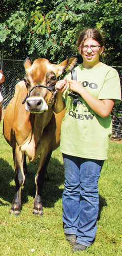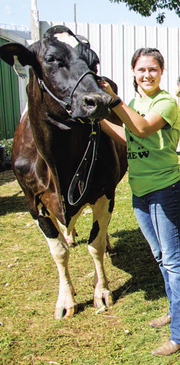 Youth dairy exhibitors appeared in the auction ring to raise money for educational activities and to cover the cost of attending dairy judging contests. The donations amounted to $12,600. Kaylee Kriser exhibited the grand champion Holstein and supreme champion dairy cow at this year's fair. Other champion exhibitors were: Hannah Metzger, Jersey; Hayley Wineland, Ayrshire and AOB (any other breed); Andrew Dunn, Guernsey; and Hope Shilling, Brown Swiss.