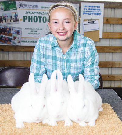 The grand champion stewer rabbit was exhibited by Aley Wonders of Bronson. She earned $1,100 from Moody and Crew LLC, Tyson and Lisa Franks, George and Thelma Wonders, Control Concept, Bear and Karen Ratkowski, Kold Kreek Farm, Curt Albright Farms, Van Vorst Farms, Michael's Lawn Service, Slone Show Stock, Wonders Repair and Fab, Ayers Insurance/Tyler Losinski, and Bella Vista Golf Course.